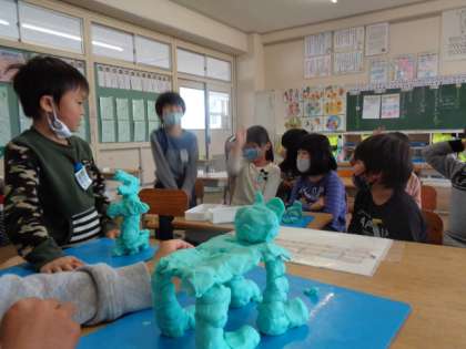 今日は粘土全部を使って、一人一人動物を作りました。何を作ったかは内緒にして、最後にクイズを出しました。すぐに分かるのもあれば、なかなか当たらないのもあり、楽しかったですね。