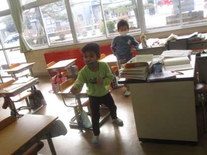 レクリエーションでは、宝探しとかくれんぼを行いました。宝探しでは、折り紙のお宝を一人一つ隠して、自分が隠した宝以外を見つけるというルールでした。子供たちは、見つからないように必死に考えて隠していました。