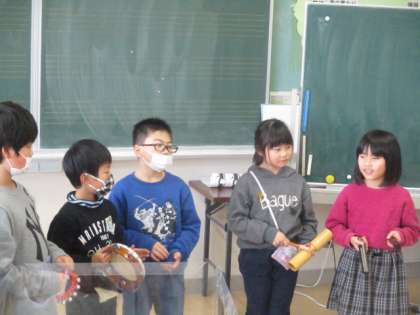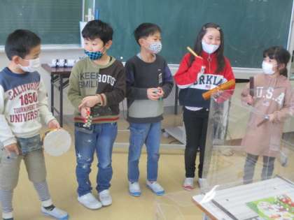 【2年生】「かぼちゃ」の演奏会 公開日 2020/12/22 更新日 2020/12/22 2年生 クラス全体で発表会をしました。楽器の組合せを工夫したり、楽器を鳴らす強さを工夫したりと、4つの団によって工夫している点も違い、素敵な演奏会になりました。