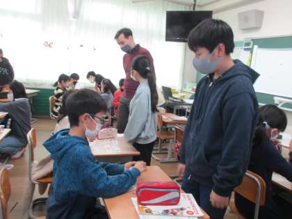 2学期の外国語学習の最終回でした。今日まで学習したことを生かして、互いに注文したり会計したりしました。注文・会計の表現、金額の言い方にも慣れ、積極的に活動する姿が多く見られていました。