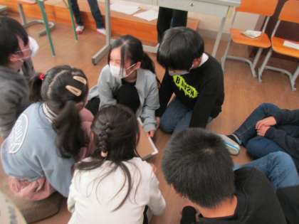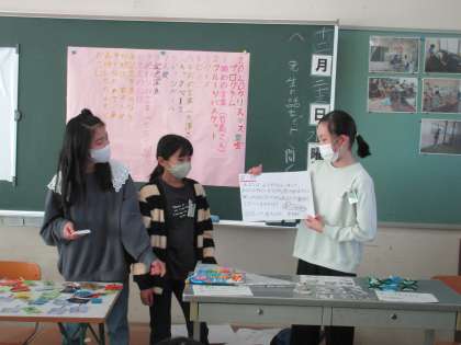 クイズでは、段に分かれて実施しました。なぞなぞや花言葉に関するクイズで、団の友達と声を掛け合う姿がすてきでした。