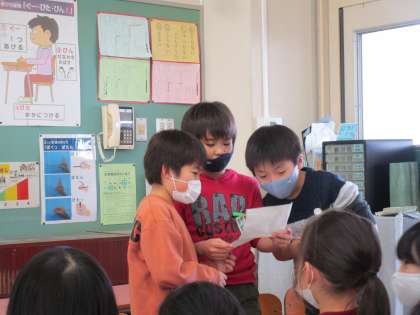 ゲーム係の名探偵ゲーム、飾り係のみんなで飾り作り、生き物いろいろ係の冬の生き物紹介、植物係の植物クイズ、がんばり係の爆弾ゲーム、運動係のいす取りゲーム、ハーモニー係のフルーツバスケットと楽しい活動がたくさんありました。みんなで仲良く取り組み、また1つ楽しい思い出が増えました。