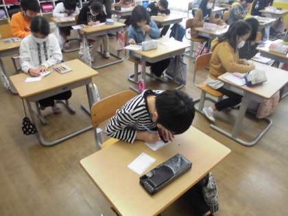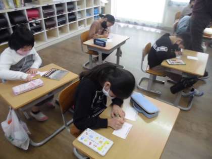 活動の様子です。送る人の気持ちを考えて作っていました。