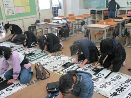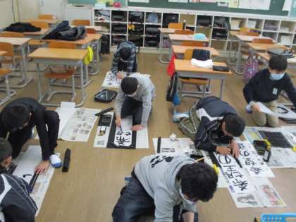 1月8日(金)3学期の始まりと同時に、小学校生活最後の書初大会を行いました。今年の題字は、「希望の道」です。12月から一生懸命練習してきました。