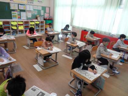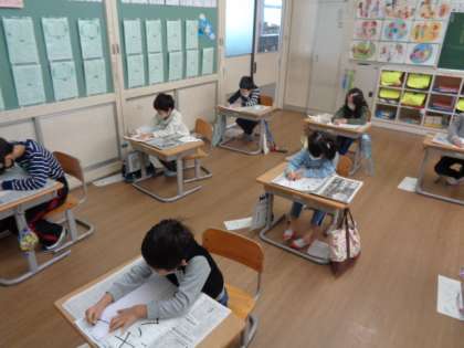 静かな教室で、一画一画真剣に、自分の一番の字を書き上げました。どの字もとてもいい字でした。
