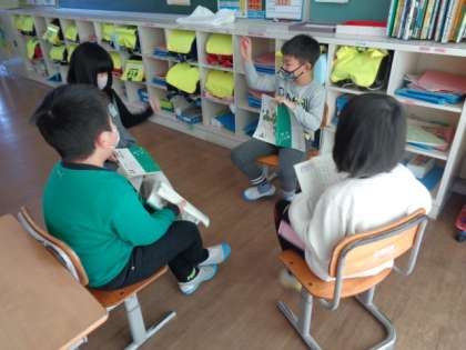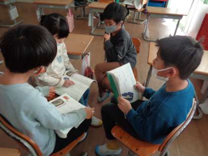 工藤直子さんののはらうたシリーズ「かたつむりのゆめ」を音読しました。「ゆっくり」と「早口」、「ひそひそ」と「はっきり」等、人によって読み方が違い、いろんな音読を楽しむことができました。グループ毎に相談して発表も行いました。
