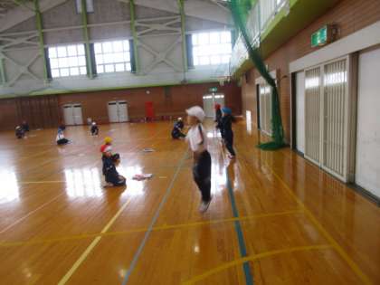 【1年生】あやとびに挑戦! 公開日 2021/01/19 更新日 2021/01/19 1年生 3学期の体育も2学期に引き続きなわとびを練習しています。今日はあやとびに挑戦しました。手首の回しや腕の動かし方が難しい技ですが、上手なお友達の跳び方をよく見てまねをして練習をしていました。