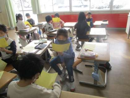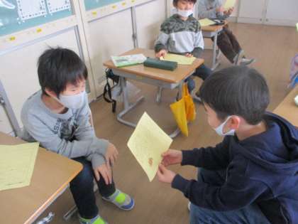 友達に詩のプレゼントをしました。自分のことを考えてプレゼントされた詩に、子供たちも嬉しそうな様子でした。