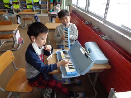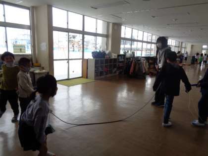 ワークスペースで8の字跳びをしたり、鍵盤ハーモニカを演奏したり、粘土遊びをしたりと思い思いに楽しんでいます。友達と過ごす自由時間はやっぱり楽しいですね。