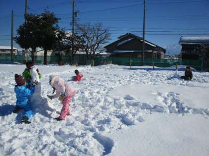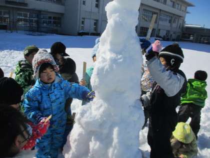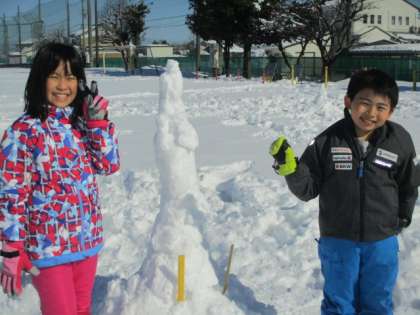 高く積み上がるように、土台を大きくしたり、固めて雪を整えたりと、友達と協力しながら作ることができました。