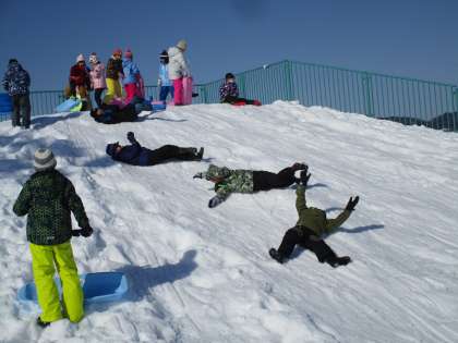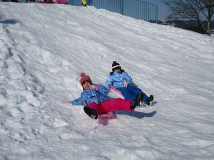 今年は雪がたくさん降ったので、みんなで雪遊びをしました。そりで友達と滑ったり、雪の上に転がったりして、全身で雪を楽しみました。楽しかったですね。