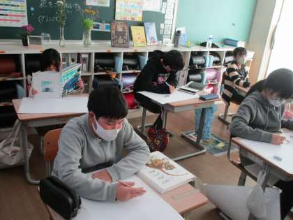 生き物をテーマに、ステンシル版画の学習をスタートしました。自分の関心のある生き物、そしてその仕草や様子等どのように表そうかと楽しそうに考えていました。明日も下書きを進めていきます。
