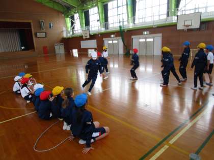 【3年生】8の字跳び 公開日 2021/01/22 更新日 2021/01/22 3年生 8の字跳びの練習を行っています。さらに回数を伸ばすことができるよう、他チームの跳ぶ様子を見て気付いたことについてアドバイスをしてくれました。そのアドバイスを生かし、これから練習していきたいですね。