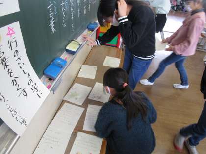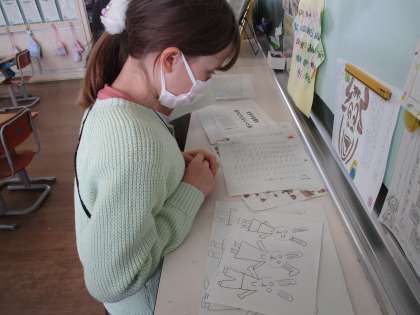 国語科「詩のくふうを楽しもう」の学習では、詩を作ったり、友達の詩を読んだりしました。友達の詩を読む際には、読んでいる友達と「すごいね」と話したり、笑い合ったりする姿が見られました。