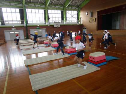 【3年生】体育 跳び箱学習 公開日 2021/01/25 更新日 2021/01/25 3年生 体育科「跳び箱」の学習では、安全な跳び箱の運び方や準備を確認し、安全に気を付けて取り組みました。次回からはどんどん跳び、様々な技や高い段に挑戦していきます。安全第一で楽しく体を動かしましょう。