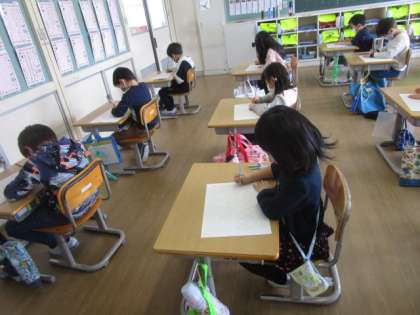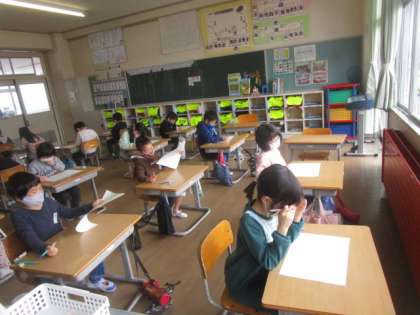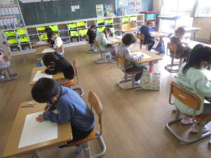 国語の時間に、国語のチャレンジテストを行いました。80点以上の合格を目指して真剣な表情で取り組んでいました。