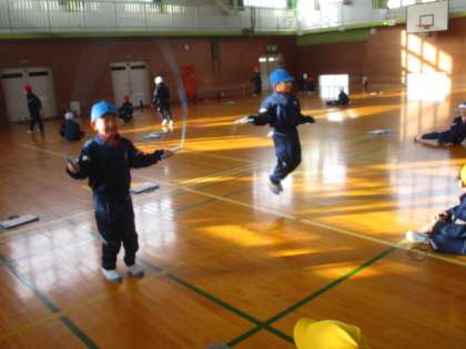 自分の得意な跳び方で記録に挑戦しました。中には、前跳びで290回以上跳んでいたお友達もいました。回数に挑戦することで持久力と筋力が鍛えられますね。