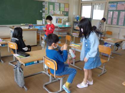 久しぶりにペアで計算カードをしました。2年生に向けて、迷わず答えられるよう、家でも学校でも練習していきましょう。