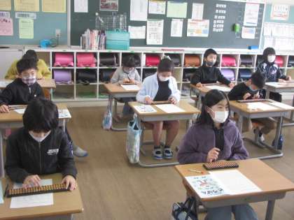 【4年生】そろばん教室 公開日 2021/01/28 更新日 2021/01/28 4年生 今日はそろばん教室でした。 3年生のころよりレベルアップし、くりあがり・くりさがりの計算にも挑戦しました。 明日もよろしくお願いします。