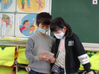 算数で、100までの数の並び方を勉強しました。自分で作った問題を友達と出し合って遊びました。