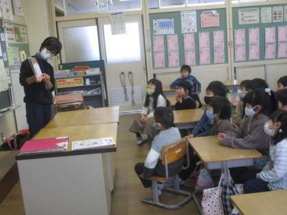朝の読み聞かせでねこのお話を聞かせていただきました。お空からサンマが降ってくるおかしな天気に魚屋さんを救うためねこががんばるお話でした。