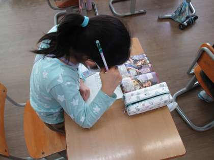 今日は、その中からいくつかの自学ノートを紹介し、「すてきだな」と思うところを出し合いました。それを踏まえ、自主学習に取り組む時間を設けると、みんな意欲的に取り組んでいました。家庭でも自主的に楽しんで学習してほしいと思います。