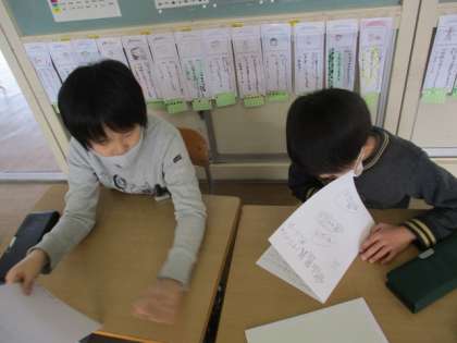 3年生さんが、総合の学習で作ったパンフレットを読み合いました。相手に伝わりやすい工夫がされていて、子供たちも楽しんでパンフレットを読んでいました。