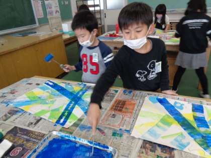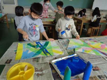 今日は2回目のローラー作業を行いました。カラフルな色に子供たちは嬉しそうです。どんな作品ができるのか楽しみです!