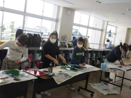 今日は木版画にインクをつけて刷りました。 一人一人違って、味が合ってとてもすてきです。