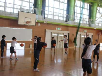【4年生】ポートボール 公開日 2021/02/05 更新日 2021/02/05 4年生 ポートボールの様子です。子供たちは体育の時間を心待ちにしています。 今日は試合ではなく、チームで練習を考えました。来週の試合に向けて、考えて取り組むことができました。