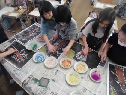 【3年生】図画工作 版画の色付け