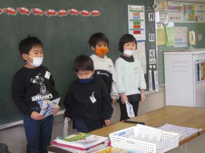 生活科の時間に明日行われる就学時学校体験に向けて最後の練習を行いました。来年入学してくる新1年生さんが学校は楽しいな、すてきだなと思ってもらえるように一生懸命練習に取り組んでいました。