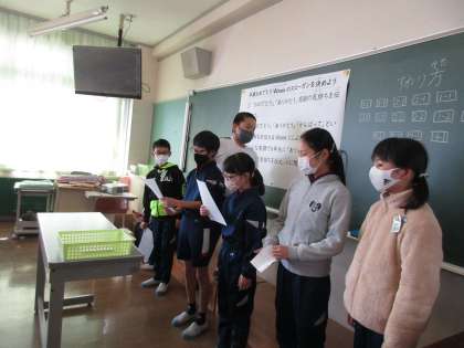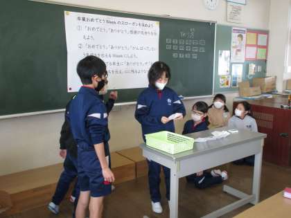 卒業おめでとうWeekのスローガンを決めるため、代表委員会を開きました。5年生のプロジェクトリーダーが中心となり、1〜4年生各クラスの代表児童と一緒にスローガンを決めました。もうあと1ヶ月で全校を引っ張っていく6年生。その姿勢が垣間見えた時間となりました。
