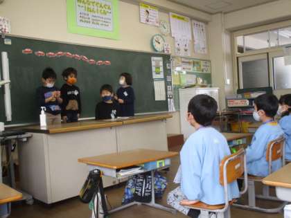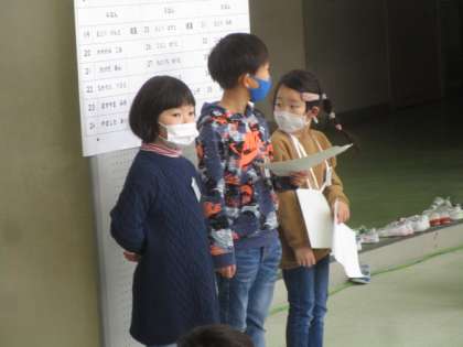 生活科の学習で、来年度入学予定の年長さんを1年生が学校案内しました。この日に向けて一生懸命練習に取り組んできた1年生はその成果を十分に発揮してくれました。活動の様子を見ているとすっかり2年生の顔つきになっていました。