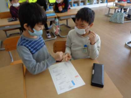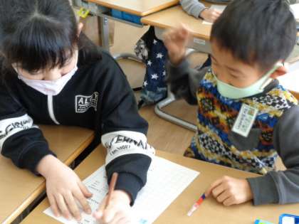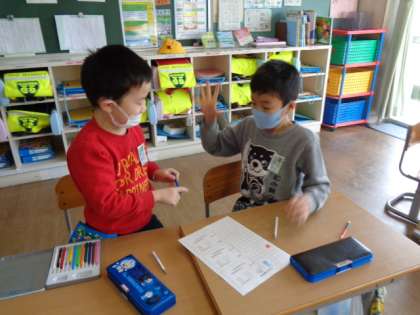 ペアの友達と陣取り遊びをしました。夢中で楽しんでいました。