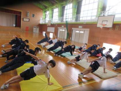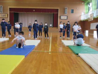 【4年生】マット運動 公開日 2021/02/16 更新日 2021/02/16 4年生 今日から体育ではマット運動をします。 今日は準備体操で様々な動きをしました。 安全に気をつけてたくさんの技に挑戦したり技の精度を高めていきましょう!
