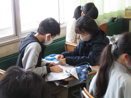 チャコペンで印をつけ、しつけ糸で仮縫いをしました。久しぶりに針を使って縫うため、玉結びや玉留めに悪戦苦闘していましたが、なんとかやり遂げました。来週、ミシンで縫っていきます。