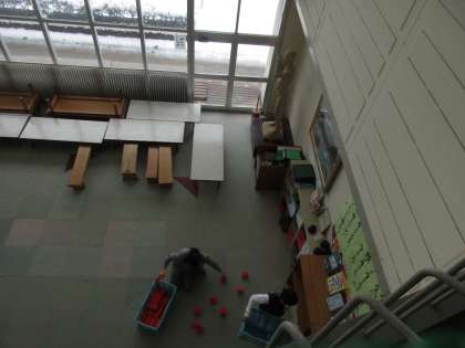 朝、多目的ホールの遊び道具を整頓してくれた子供たち。誰かのためになっています、ありがとう。