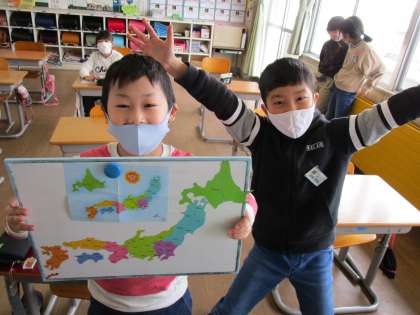 【3年生】6分で日本地図が完成 公開日 2021/02/19 更新日 2021/02/19 3年生 休み時間には、子供たちそれぞれが友達といろいろな遊びをして楽しんでいます。中には、日本地図パズルに挑戦している子供たちもいます。完成するまでの時間を短くしようと、友達と声をかけ合って完成させていました。6分37秒というタイムを嬉しそうに報告してくれました。次は、目指せ5分かな。