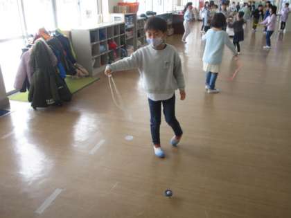 【1年生】なかよしタイム 公開日 2021/02/19 更新日 2021/02/19 1年生 休み時間に早速友達とコマ回しをしていました。誰のコマが一番長く回っているか競い合う中でどうしたら上手くなれるのかなと、試行錯誤する様子も見られました。