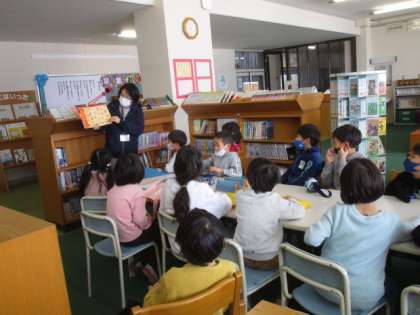 【1年生】図書室利用 公開日 2021/02/19 更新日 2021/02/19 1年生 国語の時間に図書室へ行って読み聞かせをしてもらい本を借りてきました。春と比べて文字の多い本や漢字で書かれている本も手に取る姿が見られ子供たちの成長を感じました。