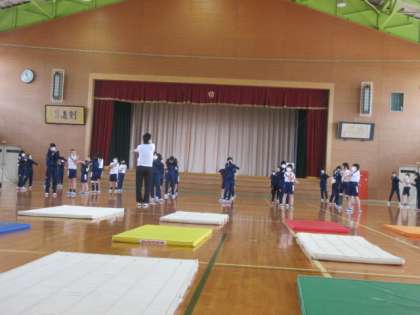 【4年生】マット運動 公開日 2021/02/24 更新日 2021/02/24 4年生 今日もマット運動をしました。 友達をお手本にしたり、難しい技にも挑戦したりと、ひとりひとりがめあてをもって頑張っていました。