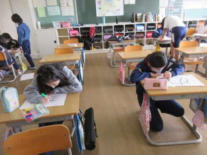 【4年生】卒業をお祝いしよう 公開日 2021/02/25 更新日 2021/02/25 4年生 昨日に引き続き、祝う習慣に向けての準備の様子です。 見やすい字で、気持ちが伝わるよう、一生懸命準備しています。 6年生にお祝いの気持ちがきっと届くはずです。