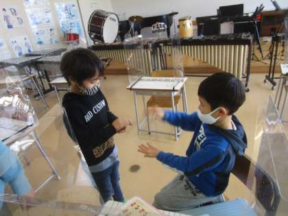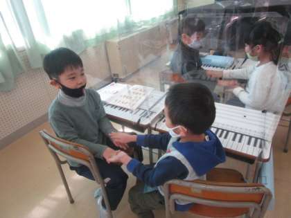 鍵盤ハーモニカの指使いの練習できらきらぼしを演奏しています。来週はきらきらぼしの指使いテストをするのでおうちでも練習してきてください。余った時間で少しだけ童歌の「おちゃらか」をしました。