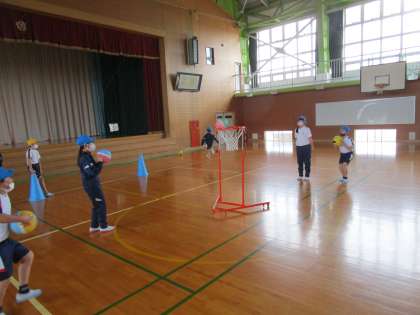 体育科では、セストボールの学習を始めました。相手のパスの出し方やゴールへ入れるコツ等を実際に行いながら見付けていきました。次回は動きながらパスをしてみたいと思います。