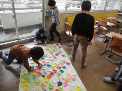 6年生への卒業おめでとうウィークに向けて、掲示を作りました。それぞれの役割に分かれて、心を込めて作っていました。6年生さんに思いが伝わるといいですね。