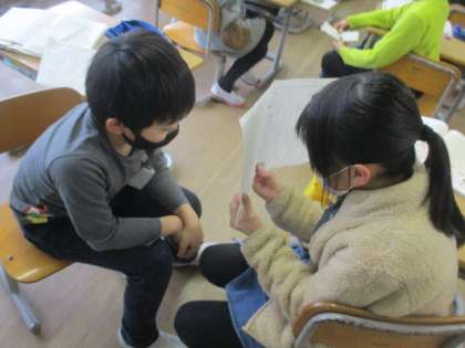 国語科では、一人一人が1年間を通して、自分の楽しかった思い出や、がんばったこと等について、学級の友達の前で発表できるように学習を進めています。