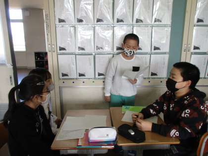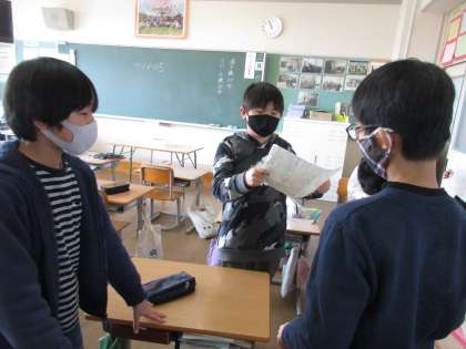 【5年生】スピーチの練習 公開日 2021/03/04 更新日 2021/03/04 5年生 班ごとにスピーチの練習をしています。進んで資料を準備してきた子供もおり、感心します。練習を繰り返す内に、自分で原稿にメモをする子供も…。「3秒空ける」「ここで少し待つ」というように、スピーチを向上できるよう、工夫していました。