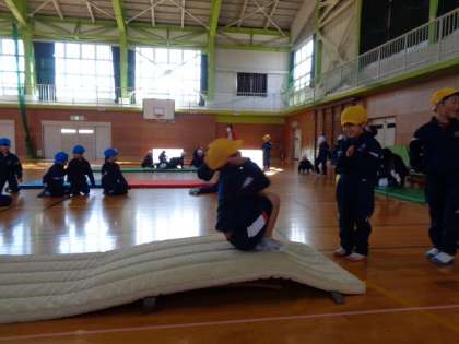 後転の練習をしました。難しい子は、坂道を使って練習しました。