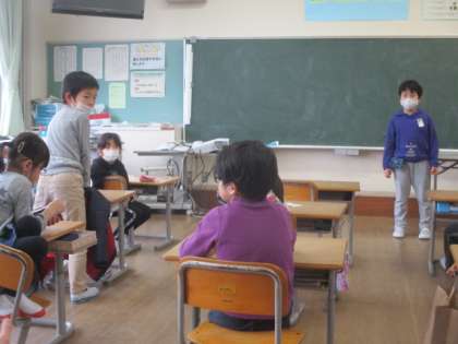 【2年生】楽しかったよ!発表会 公開日 2021/03/09 更新日 2021/03/09 2年生 国語科では「楽しかったよ、2年生」発表会をしました。 はじめ・中・おわりの文の組み立てを意識して、一人一人の子供が1年間の思いを友達に伝えることができました。